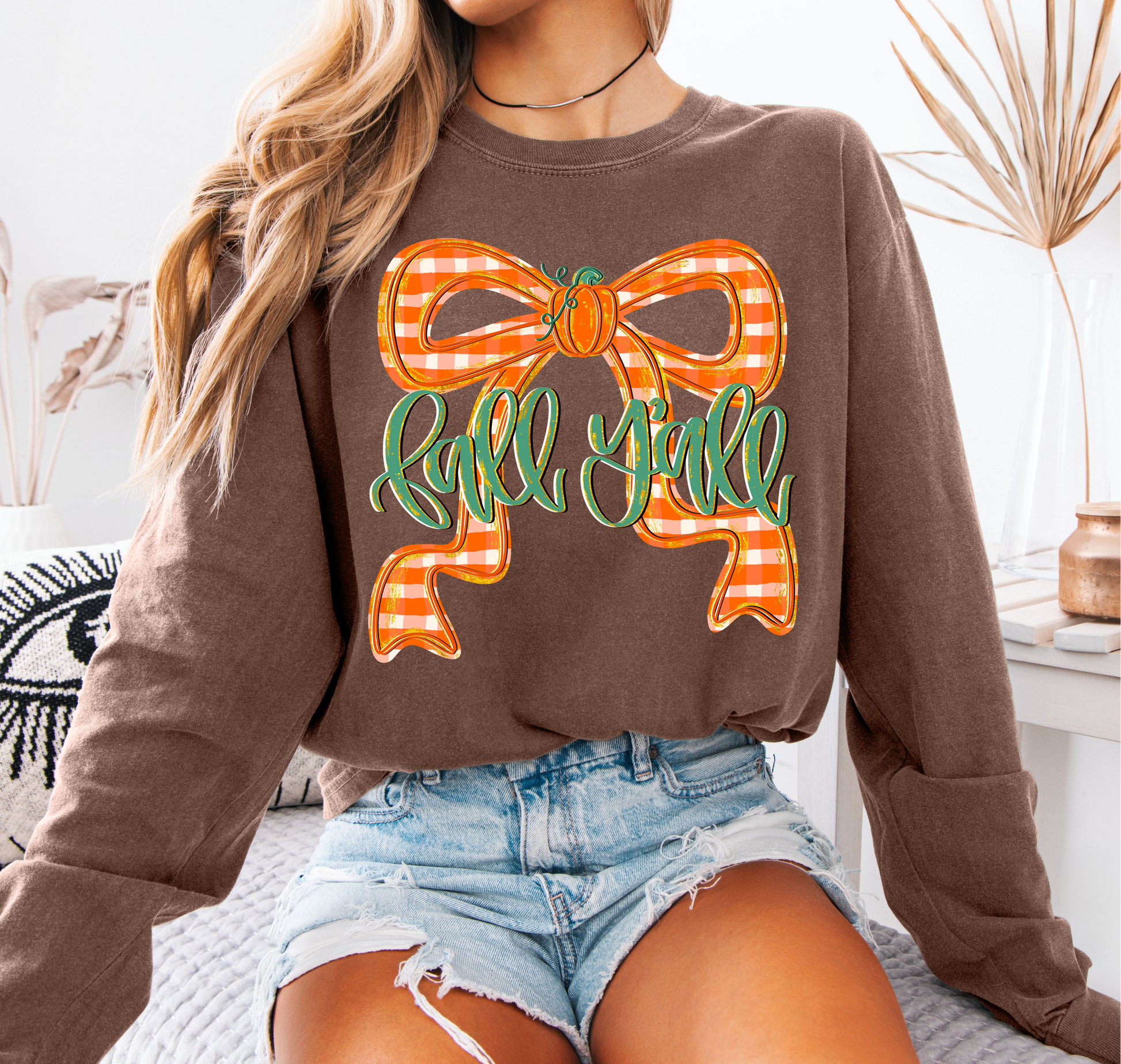 Fall Y'all Long Sleeve Comfort Color, Cozy Autumn Tee, Pumpkin Shirt, Harvest Apparel, Thanksgiving Gift, Unisex Fall Fashion